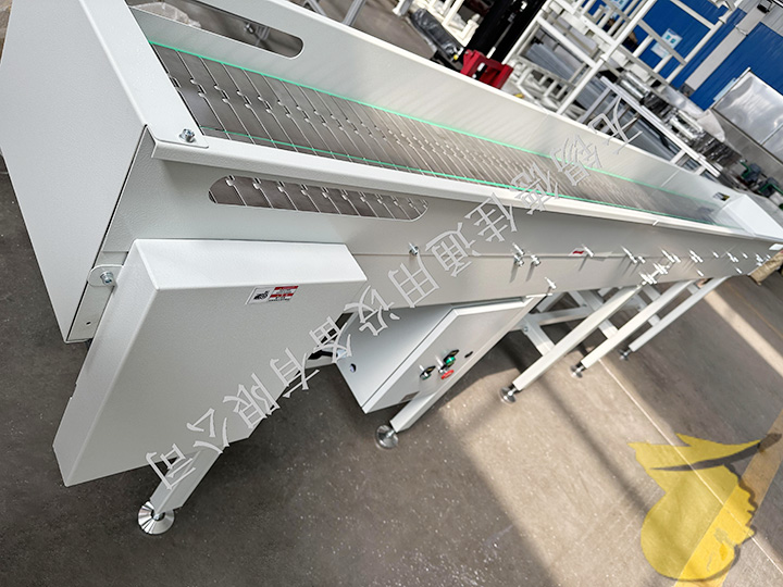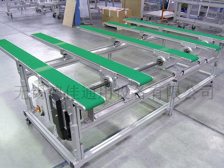 流水線運轉(zhuǎn)有:輸送機、皮帶輸送機、鏈板輸送機、爬坡輸送機以及伸縮輸送機等。